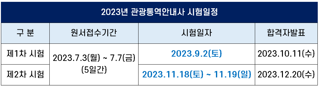 2023년 관광통역안내사 시험 일정
