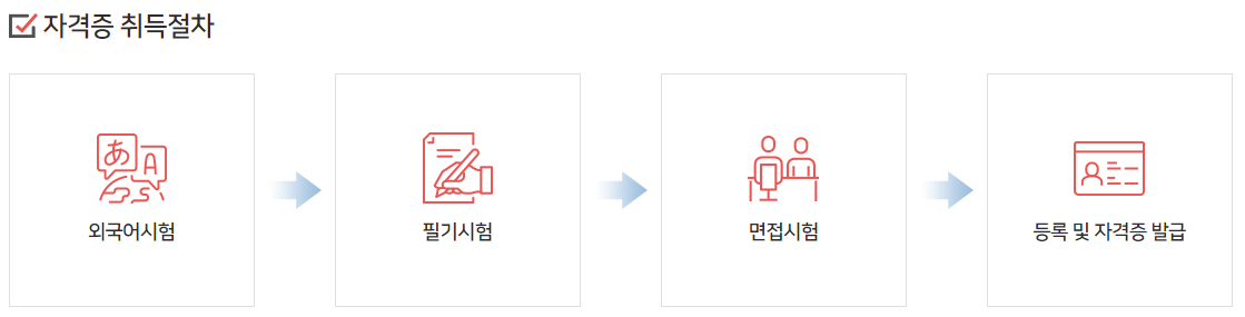 | 필기 및 외국어시험 면제 | 전년도 필기 및 외국어시험에 합격하고 면접시험에 불합격한 자(다음 회의 시험에 한정) | 제출서류 없음 ※ 단, Q-Net 기존아이디로 로그인 후 접수해야 면제자로 접수 가능 |