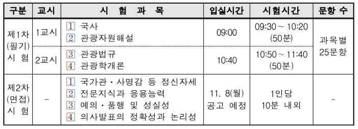 | 필기시험 일부과목 면제 (관광법규, 관광학개론 면제) |