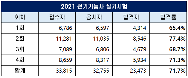 2021년 1회 2회 3회 전기산업기사 필기 및 실기 시험 합격률