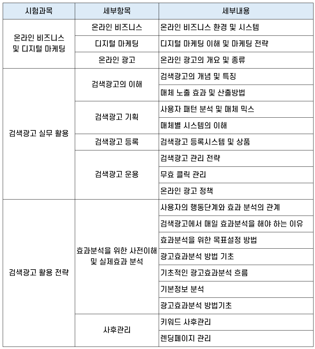 검색광고마케터 시험과목 및 출제기준