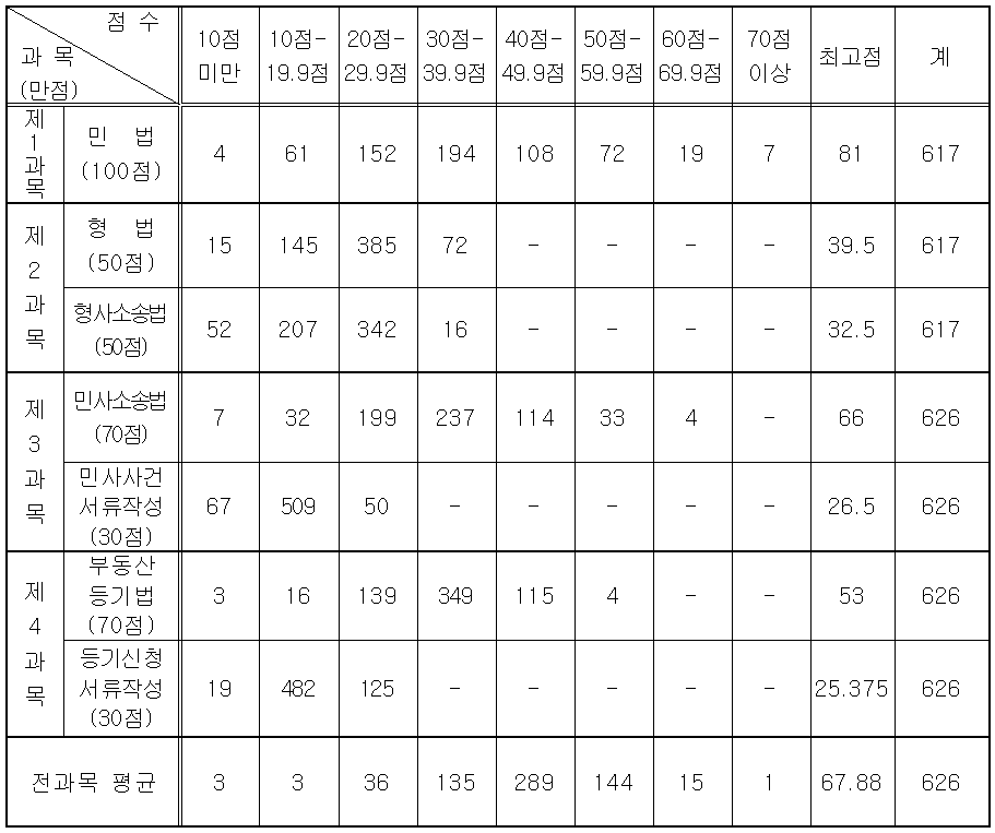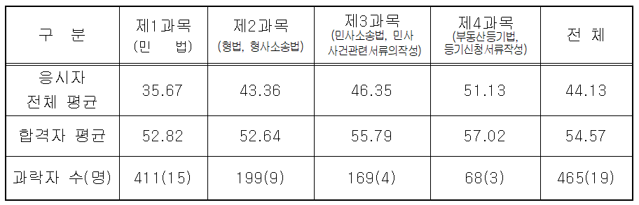 법무사 2차 합격률 (동차 및 유예) 및 합격자 통계 - 합격선(커트라인), 과락률, 나이, 성별)