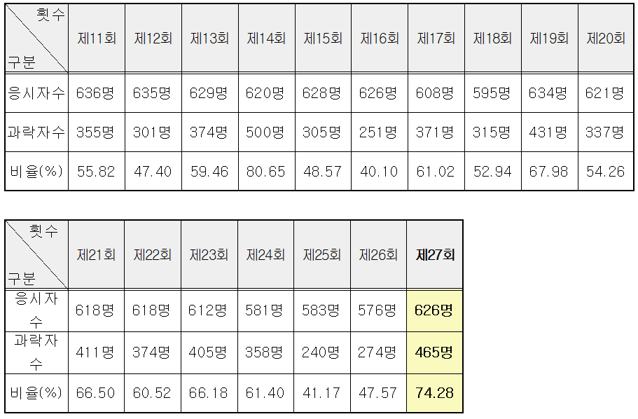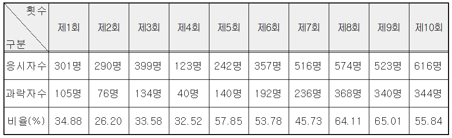 합격자 | 합격률 |