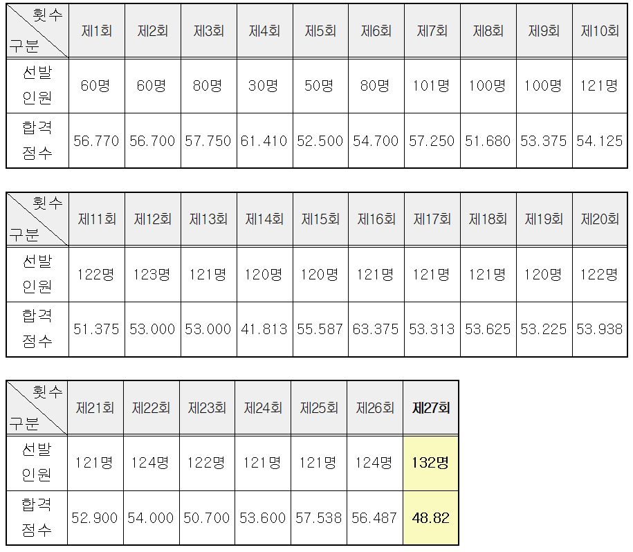 ▣ 역대 선발인원 및 합격점수