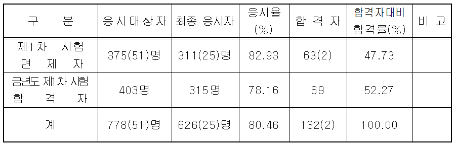 | 금년도 1차 시험 합격자 (동차생) |