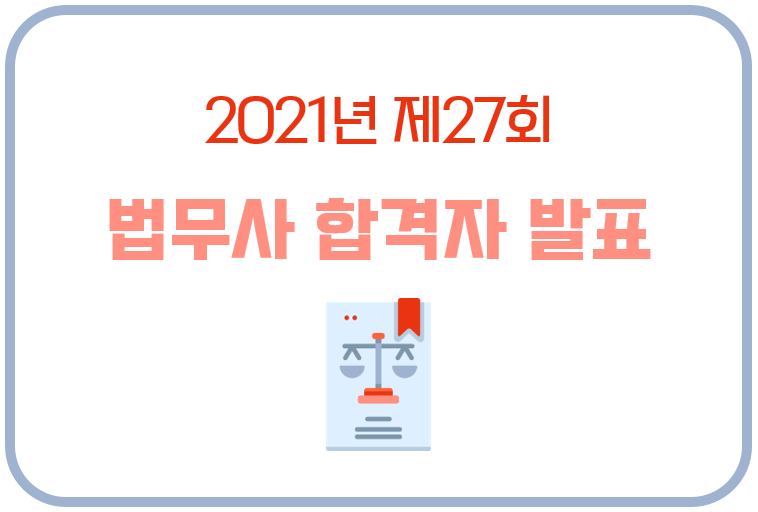 지난 9월 11일(토)과 12일(일) 이틀에 걸쳐 시행된 2021년 제27회 법무사 2차 시험 합격자가 발표되었습니다. 합격자 명단 파일은 하단에 첨부했습니다.