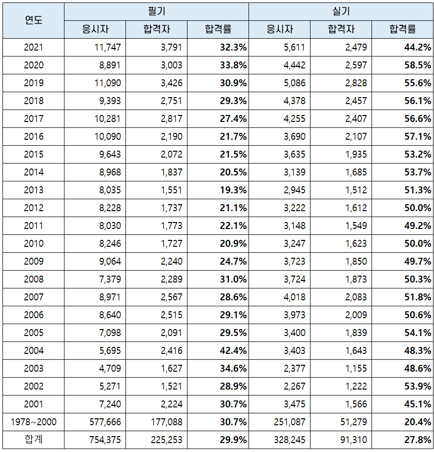 | 연도 | 필기 | 실기 | ||||