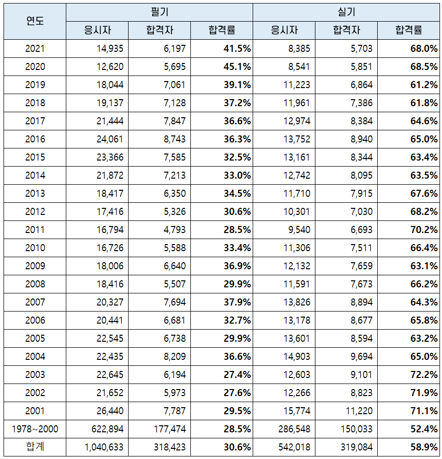 | 연도 | 필기 | 실기 | ||||
