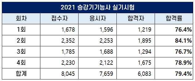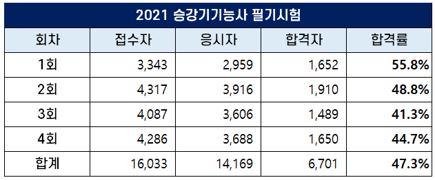 2022년 승강기기능사 합격률 (1회, 2회, 3회, 4회 필기 및 실기)