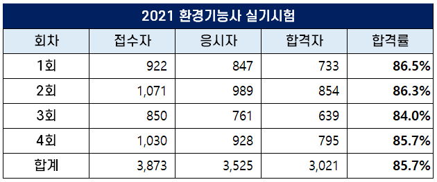 2022년 환경기능사 합격률 (1회, 2회, 3회, 4회 필기 및 실기)