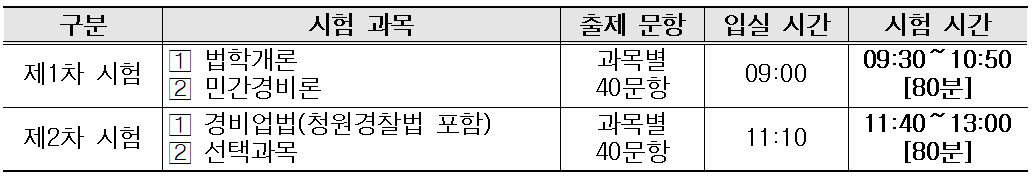 2024년 경비지도사 시험 일정 및 시간표 (25회 시행계획 공고)