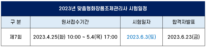 2023년 맞춤형화장품제조관리사 시험일정