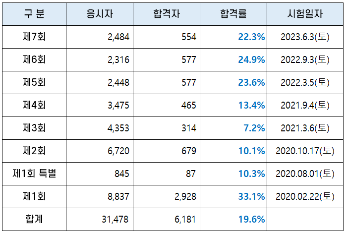 | 제7회 | 2,484 | 554 | 22.3% | 2023.6.3(토) |