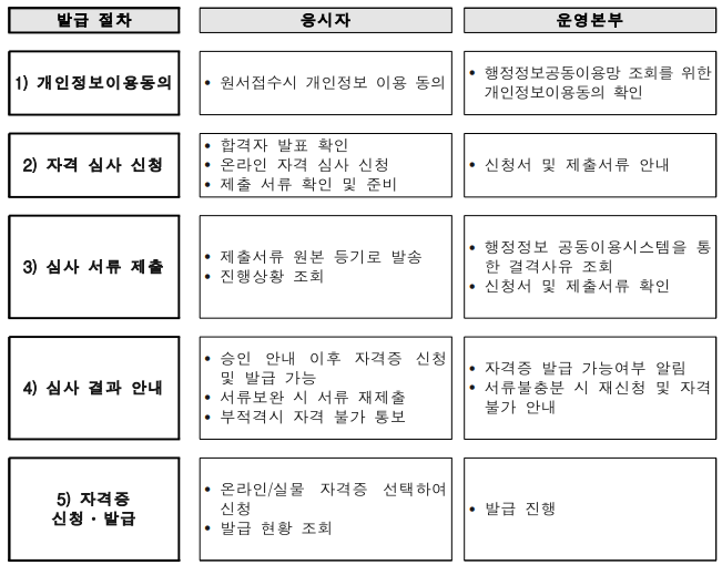 - 자격증 발급 신청서 제출: 자격시험 홈페이지를 통한 인터넷 온라인 제출