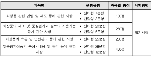 맞춤형화장품조제관리사 자격시험 정보