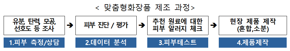 K-뷰티 화장품의 경쟁력을 강화하고 집중 지원하기 위해 정부는 개인별 피부 진단을 통해 고객 맞춤형으로 화장품을 제조하는 맞춤형 화장품 제도를 세계 최초로 신설하고 2020년 3월부터 시행하고 있는데요.