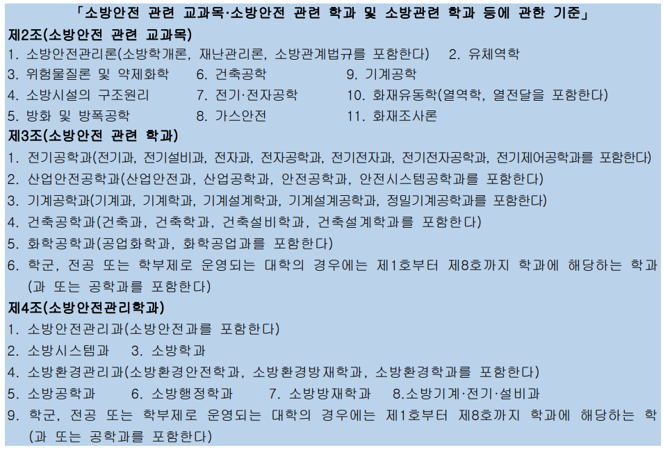 1) 대학 또는 고등학교에서 소방안전 관련 교과목을 6학점 이상 이수하고 졸업한 사람
