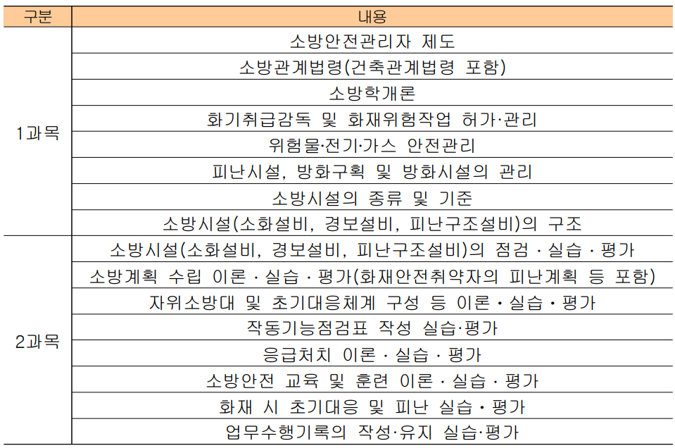 2급 소방안전관리사 시험 과목이 2023.7.1.부터 아래 표와 같이 변경되었습니다.