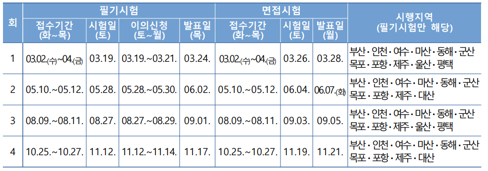 2023년 해기사 시험 일정 (+ 항해사, 기관사, 소형선박조종사)