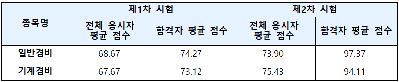 일반경비지도사 및 기계경비지도사 커트라인