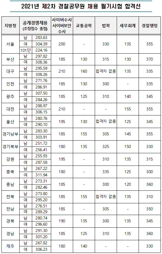 2021년 순경 공채 및 101단 경찰 공무원 합격선
