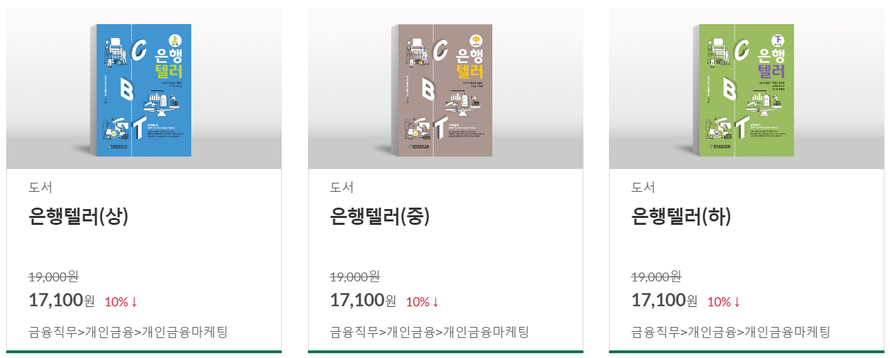 은행텔러 자격 시험 준비는 한국금융연수원이 발간하는 수험 참고도서인 은행텔러 상, 중, 하의 3권으로 공부하면 충분합니다.