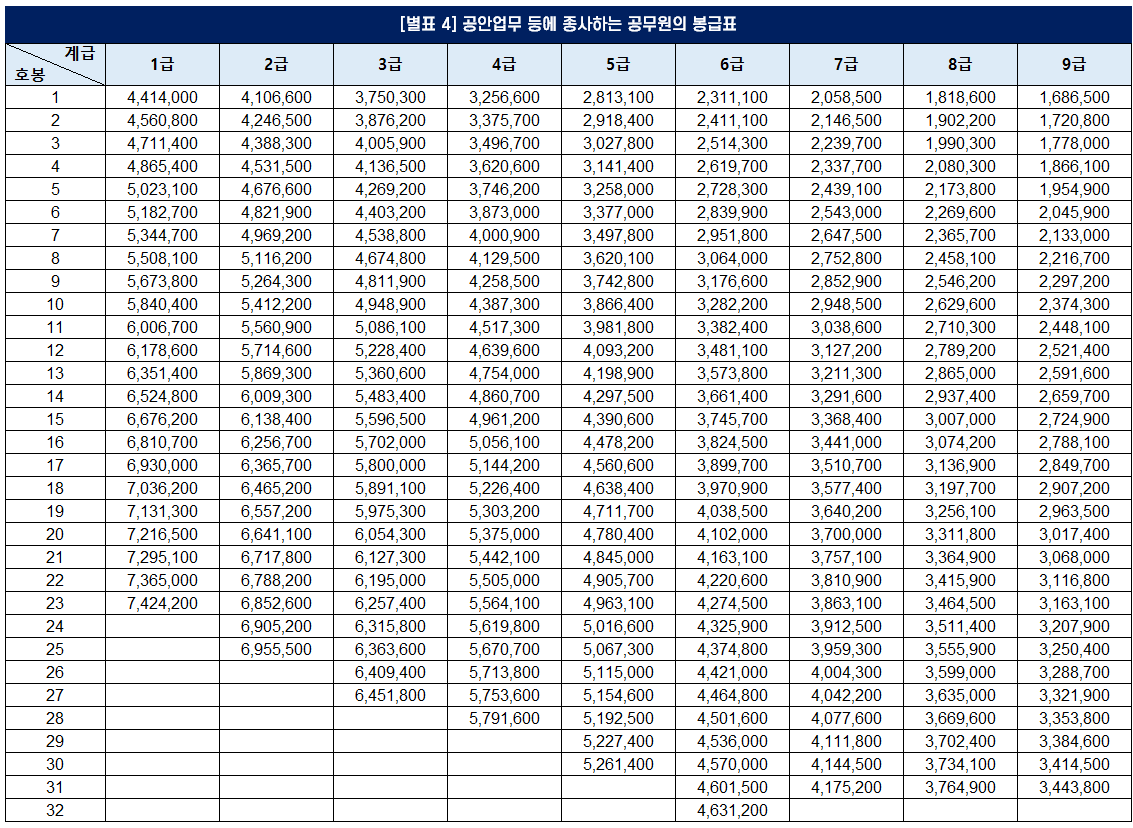 2023년 공무원 봉급표 by 공무원 보수 규정 개정