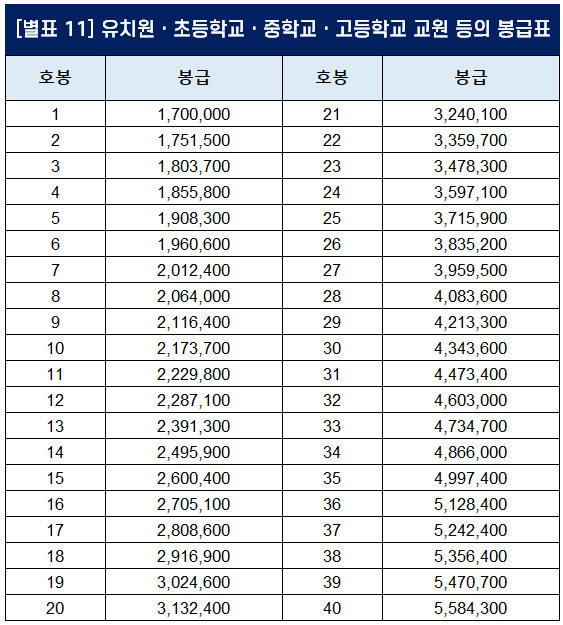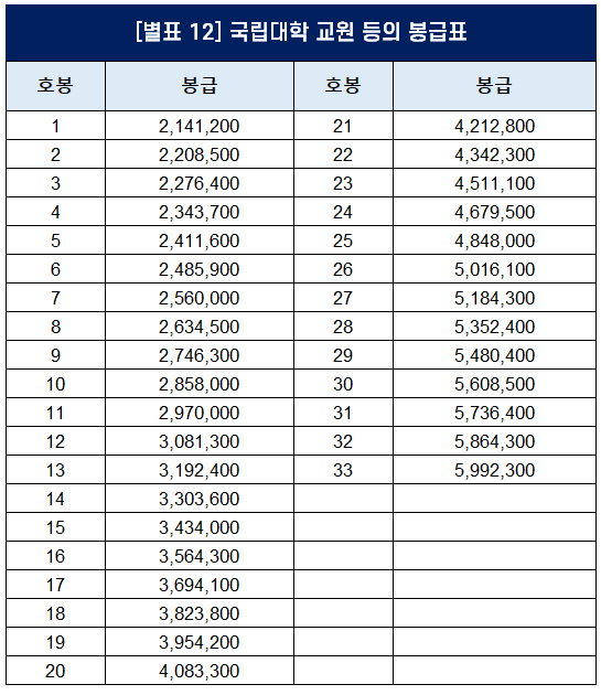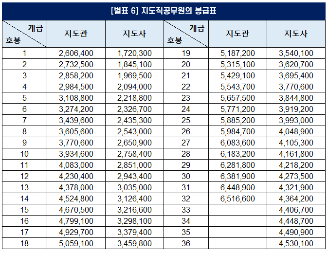 | 호봉 | 1급 | 2급 | 3급 | 4급· 6등급 |