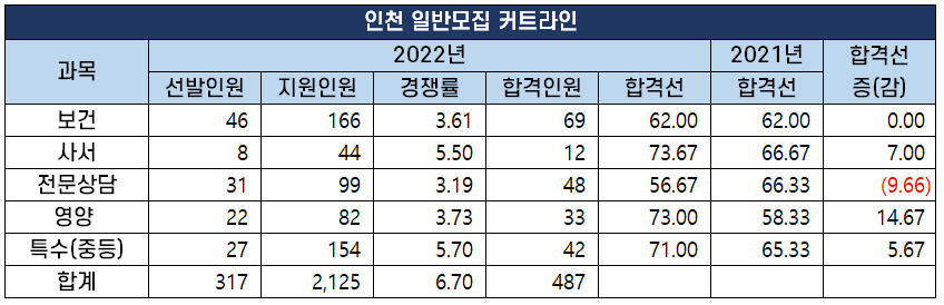 인천 중등 임용고시 커트라인