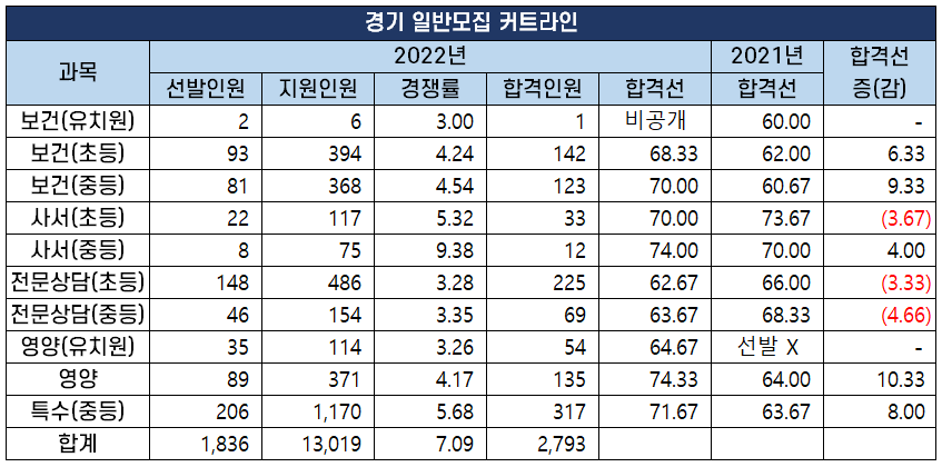 2022 과목별 중등임용고시 1차 커트라인(합격선) 분석