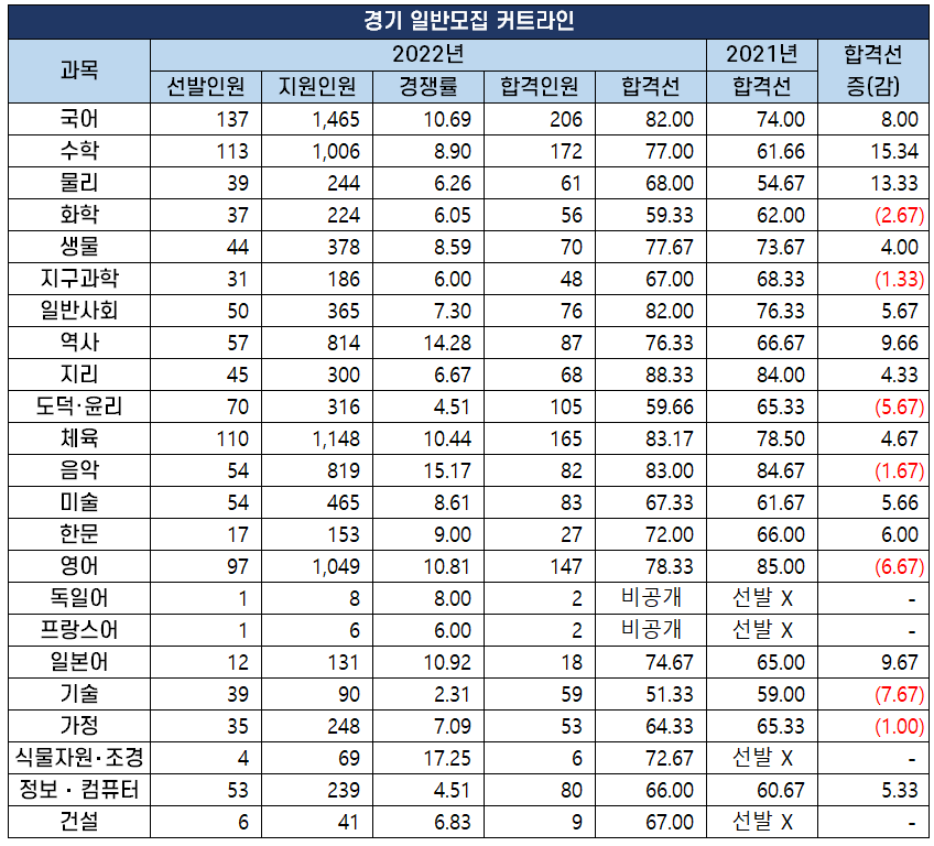 | 경기 일반모집 커트라인 | |||||