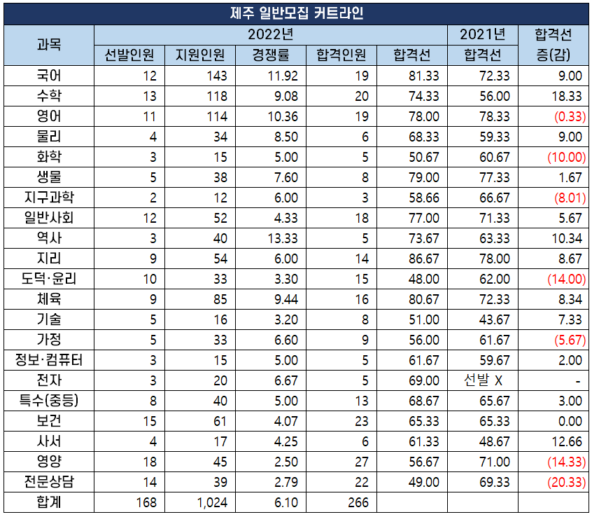 | 제주 일반모집 커트라인 | |||||