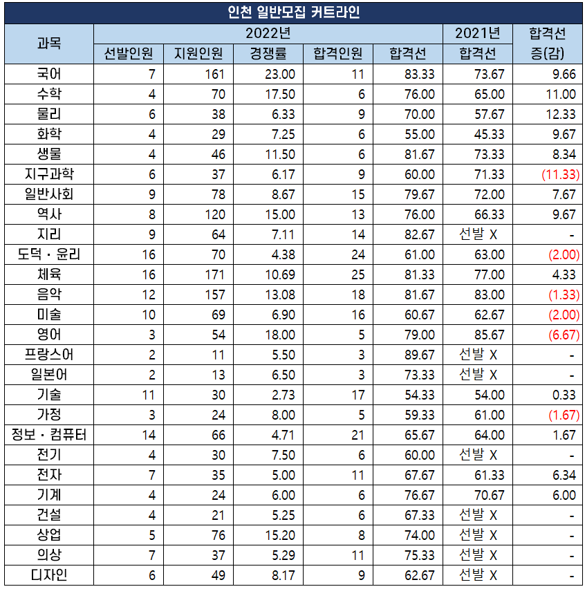 | 인천 일반모집 커트라인 | |||||
