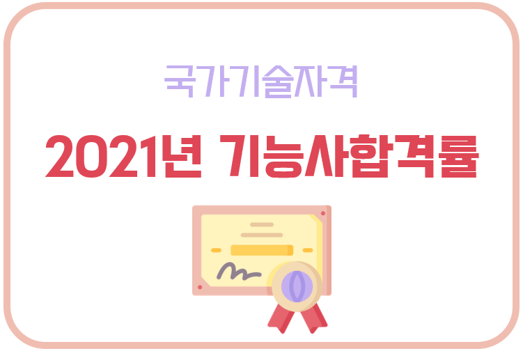 2021년 1~4회 정기 기능사 필기 및 실기 합격률이 궁금하신 분은 하단에 링크를 첨부한 포스팅을 참고하시기 바랍니다. 또한, 위험물기능사, 정보처리기능사, 가스기능사, 컴퓨터그래픽스운용기능사, 조경기능사의 필기 및 실기 합격률은 별도로 정리한 포스팅이 있으니 아래 링크를 통해 확인하시기 바랍니다.