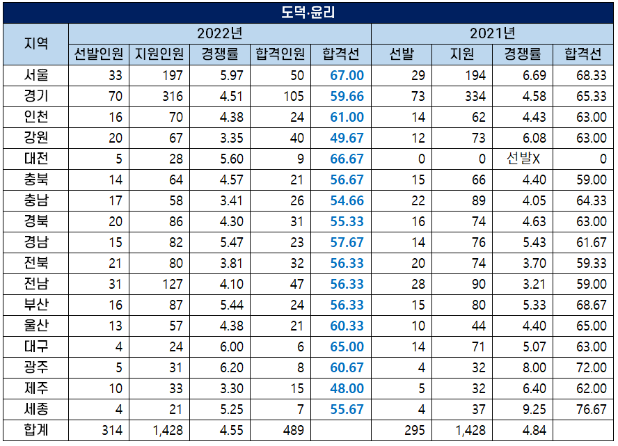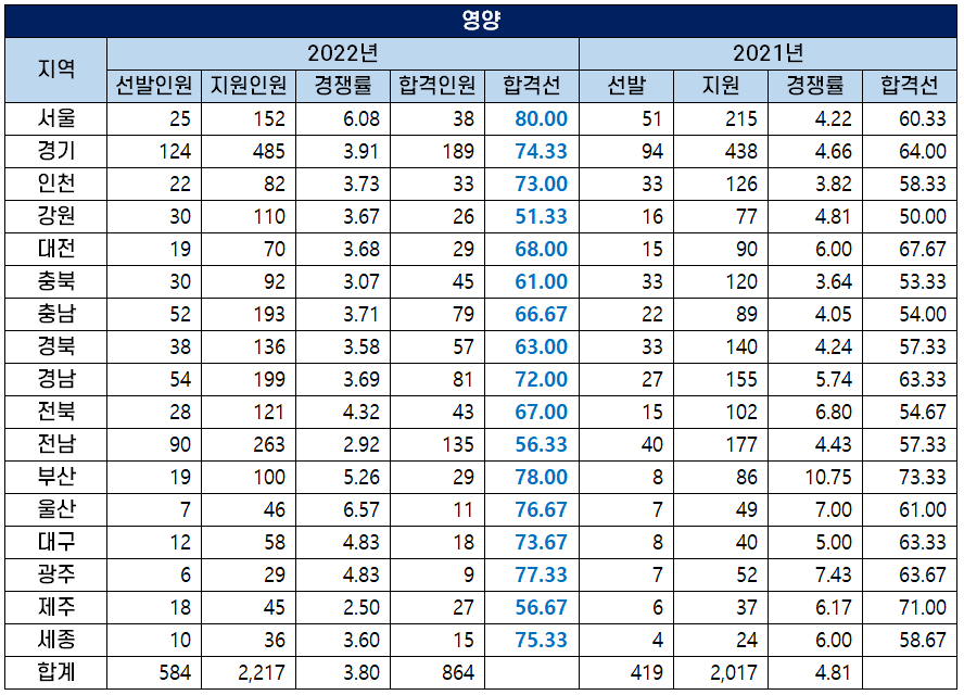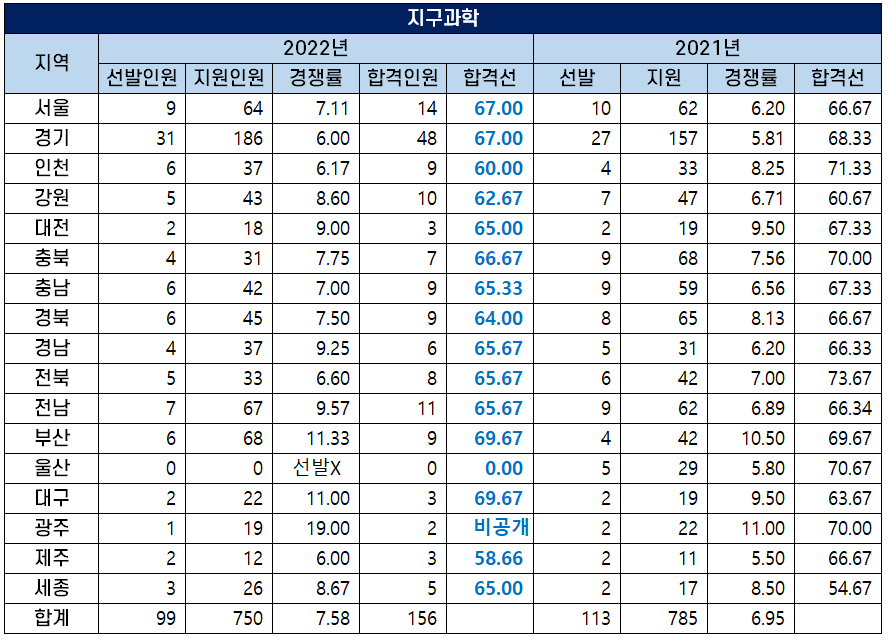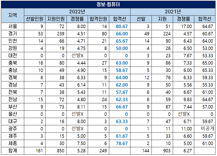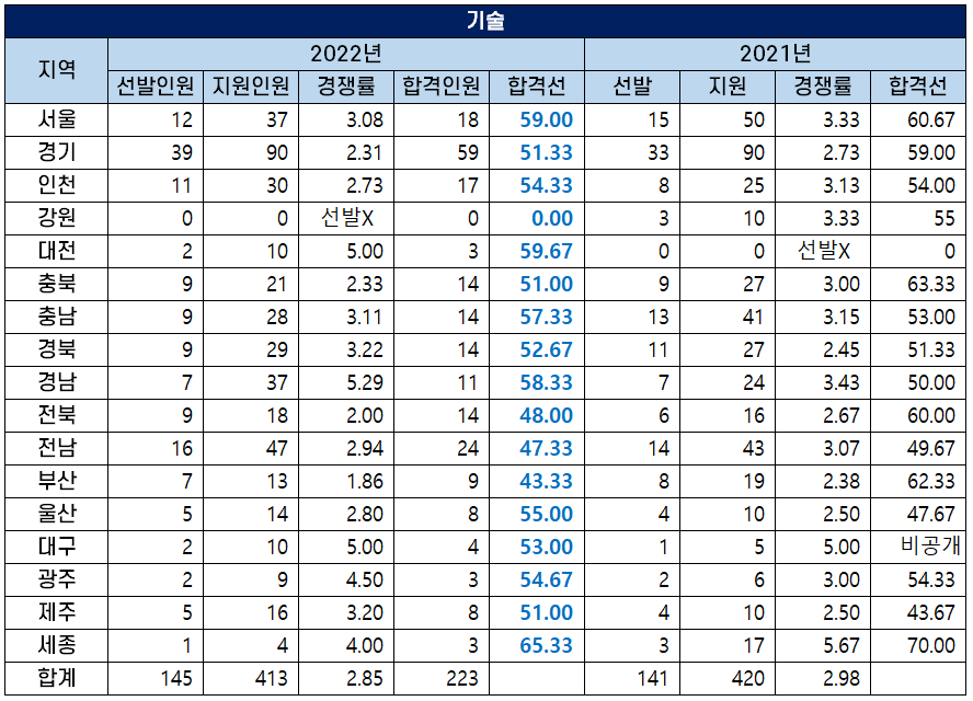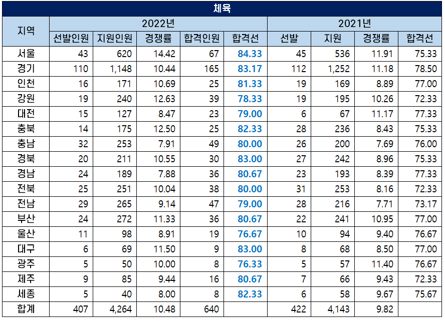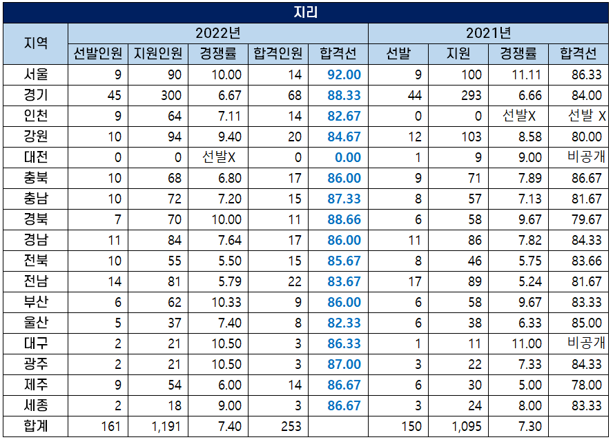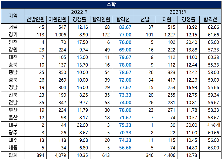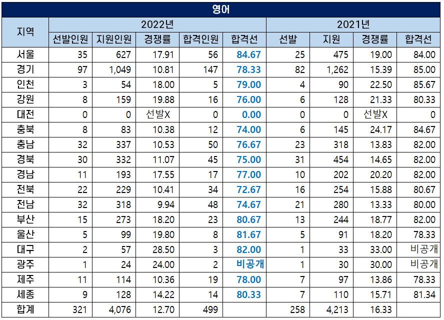 2022년 중등 임용 고시 최종 합격자 발표 및 커트라인 (+ 지역별 합격선 비교)
