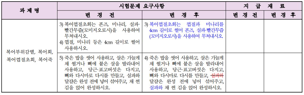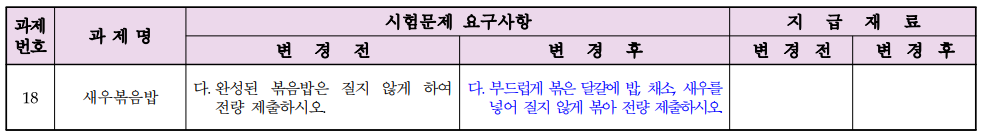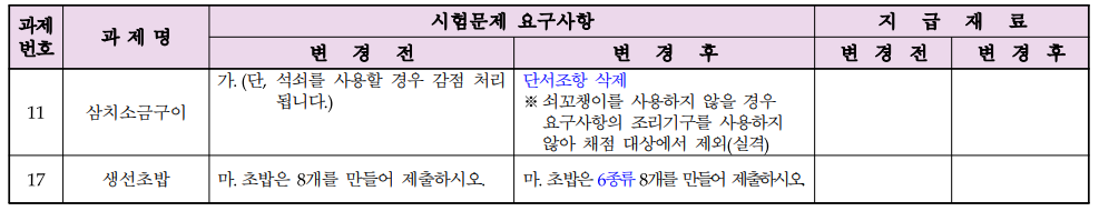 2022년 조리 기능사 실기 시험 변경 내용 안내