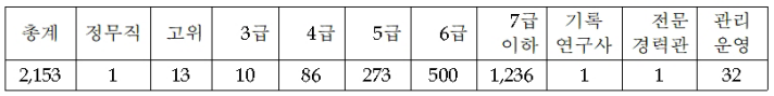 2023년 5월 말 기준 통계청 소속 공무원은 총 2,153명인데요. 7급 이하 공무원이 1,236명입니다.