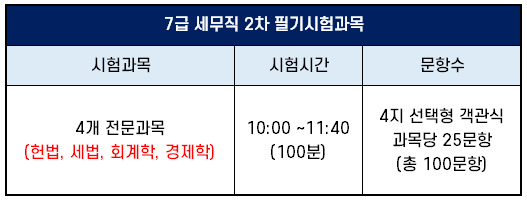 2차 시험 과목 및 시험 시간