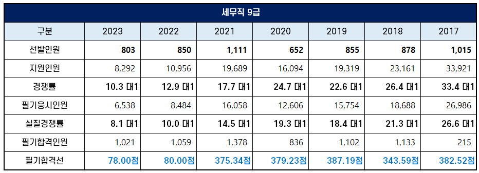 2023년 세무직 경쟁률 및 합격선