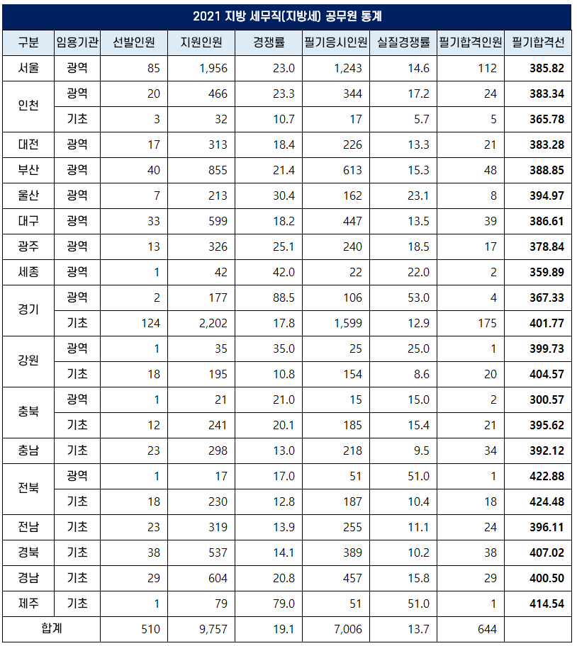 | 2021 지방 세무직 공무원 시험 통계 | ||||