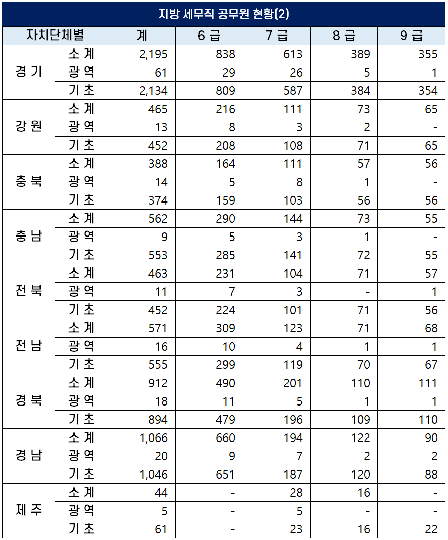 전국 지방 세무직 공무원 현황