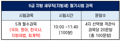 9급 지방 세무직 시험 과목 및 기출문제
