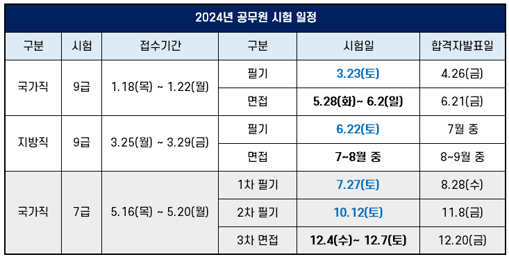 2024년 9급 공무원 시험 일정 비교 (+ 국가직, 지방직, 교육청)