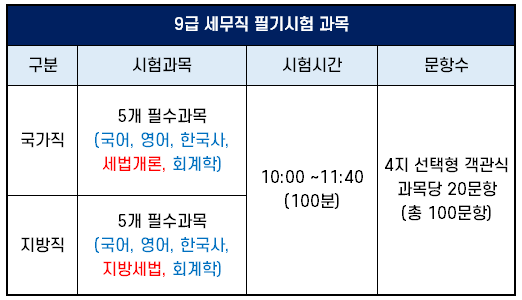 9급 세무직 공무원 시험과목