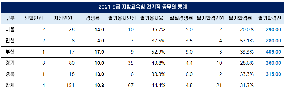 | 2021 9급 지방교육청 전기직 공무원 통계 | ||||