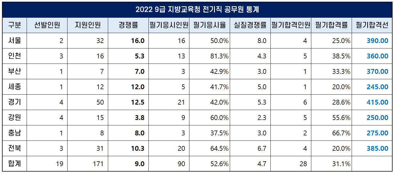 | 2022 9급 지방교육청 전기직 공무원 통계 | ||||