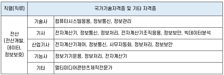 | 기사 | 전자계산기, 정보통신, 정보처리, 전자계산기조직응용, 정보보안, 빅데이터분석 | |