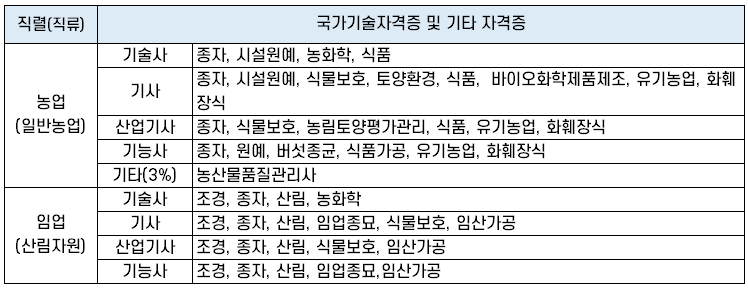 농업(일반농업), 임업(산림자원) 직렬 가산 대상 자격증
