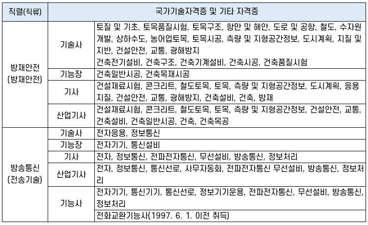 방재안전, 방송통신(전송기술) 직렬 가산 대상 자격증