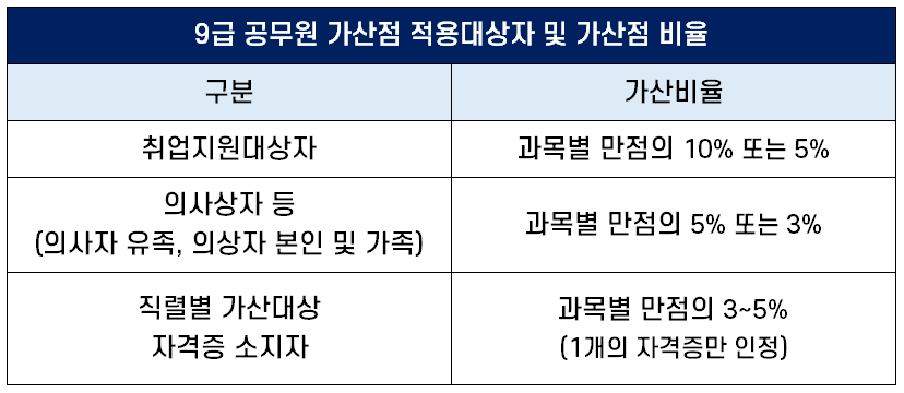| ③ 직렬별 가산대상 자격증 소지자 | 과목별 만점의 3% 또는 5%(1개의 자격증만 인정) |
